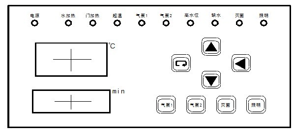 4) 灭菌键:按一下该键,室內杀菌灯亮,再按一下,则杀菌灯灭。