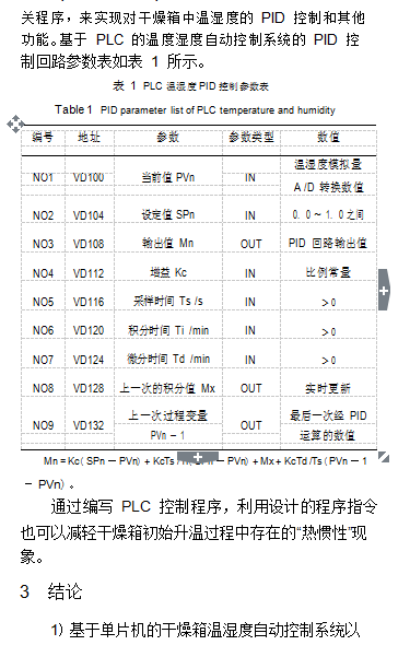 PLC 的 PID 控制来消除干燥箱中温湿度的稳态误差且 |