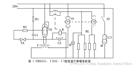 型恒温干燥箱为例 ,其控制电路图如图 1 所示,元器件组成如表 1 所示。