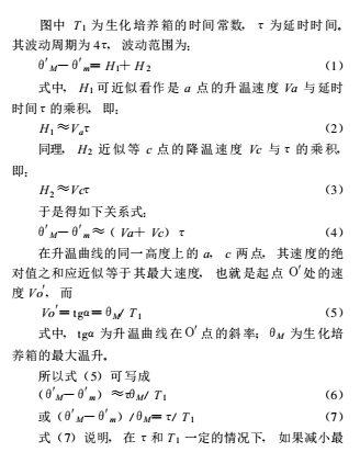 由于热传递延迟时间 τ的影响, 生化培养箱内的温度并不是随加热器工作的起止而立即变化, 而是要延长一段时间才开始变化, 其机内温度的变化见图 3 , 图中 θ′M 、
