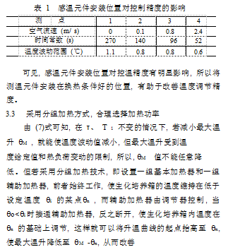 大温升 θM , 即减小加热功率, 就能使温度波动幅值 (θ′M -θ′m) 减小, 提高调节精度, 而 θM 与加热功率正相关。